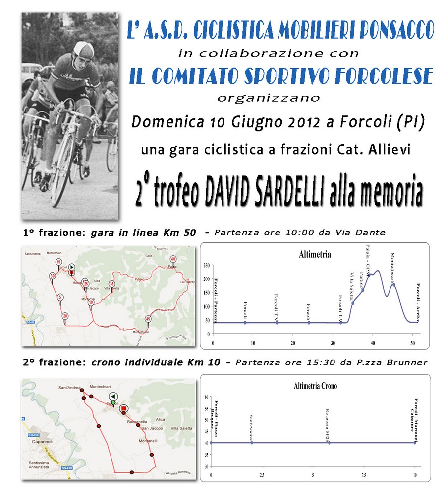 Continuano i preparativi a tutto campo da parte degli appassionati di ciclismo forcolesi che vanno a piazzare questa corsa a frazioni per Allievi in calendario il 10 Giugno proprio sulle loro strade della Valdera in provincia di Pisa.