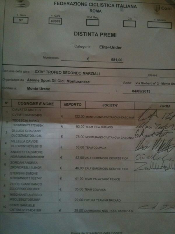 Ieri ci e' stato erroneamente comunicato che nella gara di Monte Urano riservata alla categoria Elite-Under23 al quarto posto era giunto Simone Andreetta (Zalf Euromobil Desiree Fior) in realta' al quarto posto e' giunto Davide Villella (Team Colpack) mentre Andreetta e' arrivato quinto, con il conseguente riposizionamento di tutti gli altri corridori giunti successivamente.
